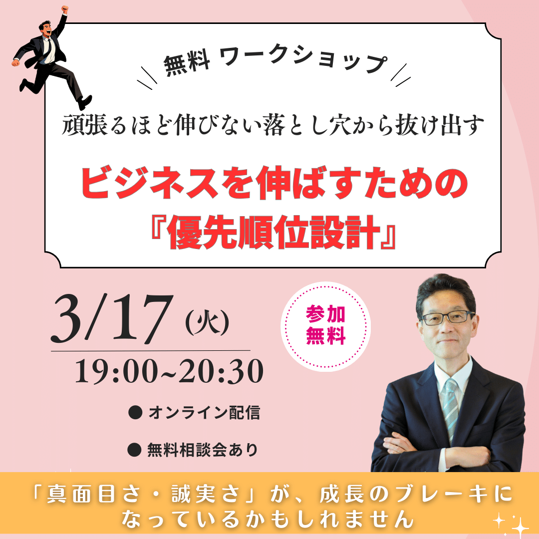 「頑張るほど伸びない」落とし穴から抜け出す—ビジネスを伸ばすための『優先順位設計』90分ワークショップ